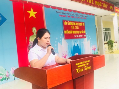 Đ/c Vương Thị Ngọc Ánh - Phó chủ tịch UBND - Giám đốc TTHTCĐ xã Tân Việt khai mạc và phát động tuần lễ học tập suốt đời năm 2020